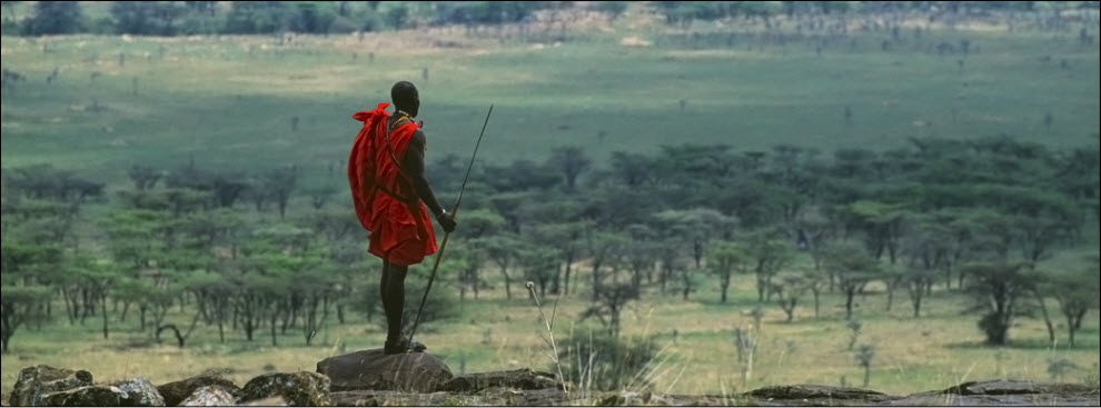 9. Масаи. Человек из племени Масаи смотрит на равнины Масаи Мара.