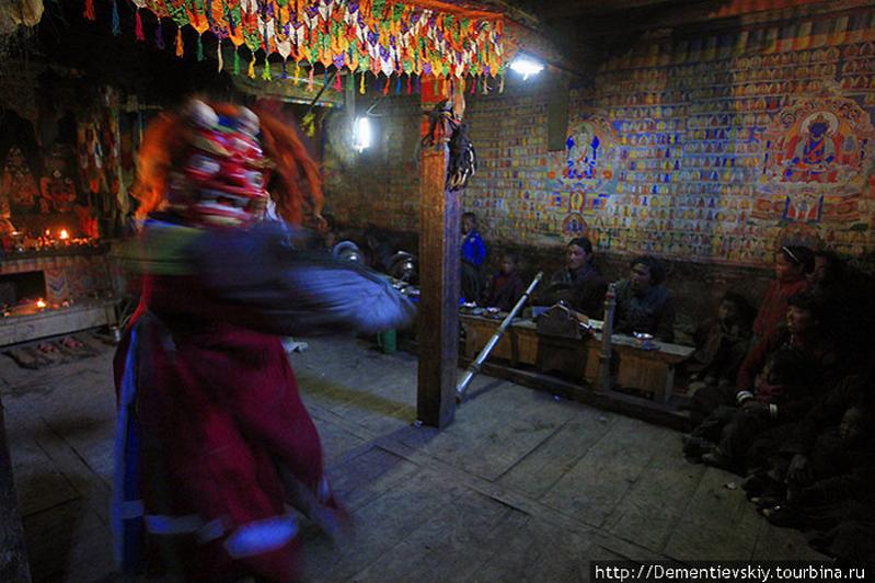 12) Во время праздника происходило благославление, ритуальные танцы, чтение мантр. Лама благословил путешественников и пожелал им удачи в дальнейшем пути. На фото: аутентичные танцы традиции бон в ритуальной комнате.