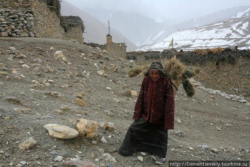 13) Российские путешественники побывали в этих отдаленных районах Гималаев впервые. На фото: местная женщина несет хворост.