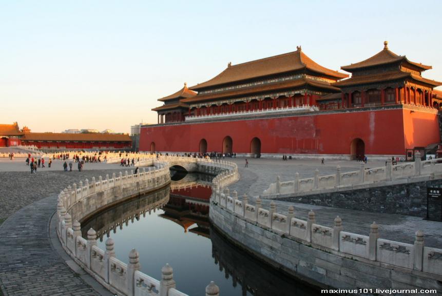 25. При строительстве дворца был важен «правильный» фэн-шуй, а это означало, что на юге должна протекать река, которая гармонизирует «хорошую» южную энергию ци, а на севере должна стоять гора, отсекающая «плохую» северную энергию. Все пришлось создавать искусственно – прорыли южный канал Нэйцзиньшуй или Внутренняя Река Золотой Воды и насыпали холм на севере – Цзиншань. Канал Нэйцзиньшуй