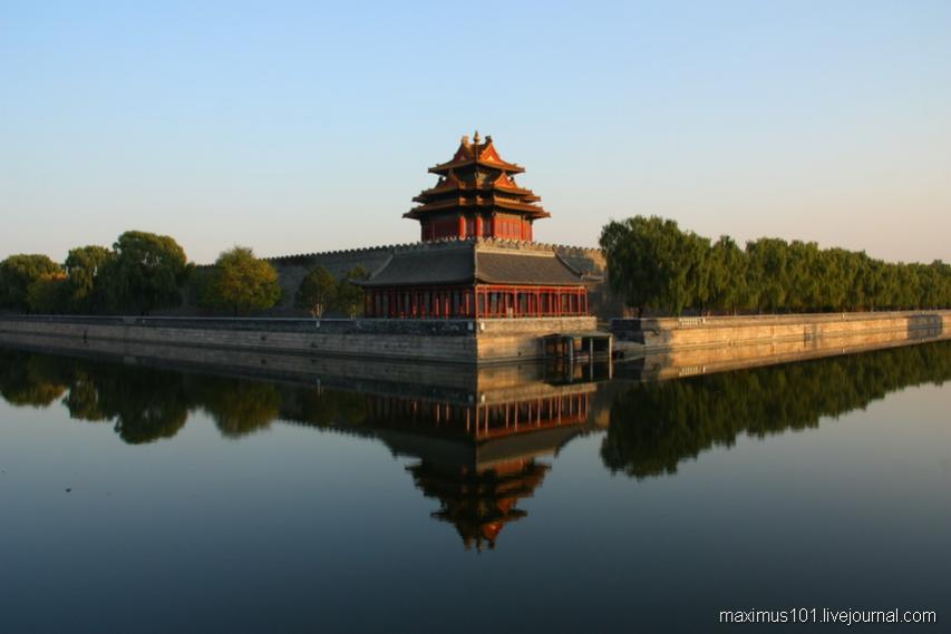 26. Запретный город окружен внушительными стенами и рвом 50 метров шириной, что-что, а стены китайцы строить умеют. Угловая башня Запретного Города.