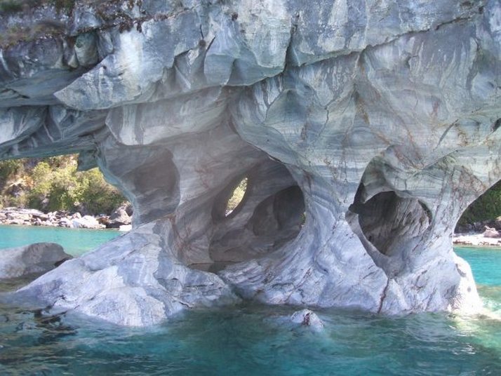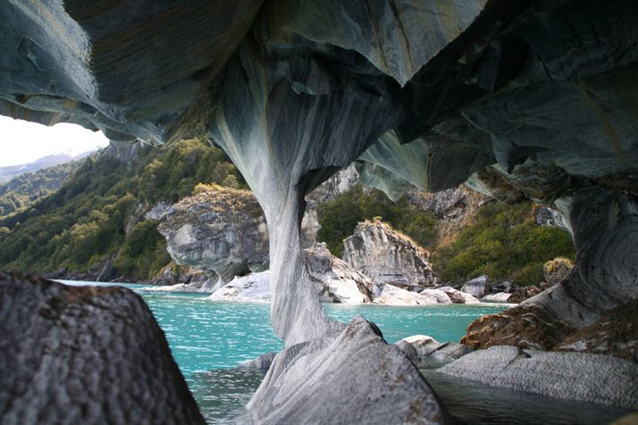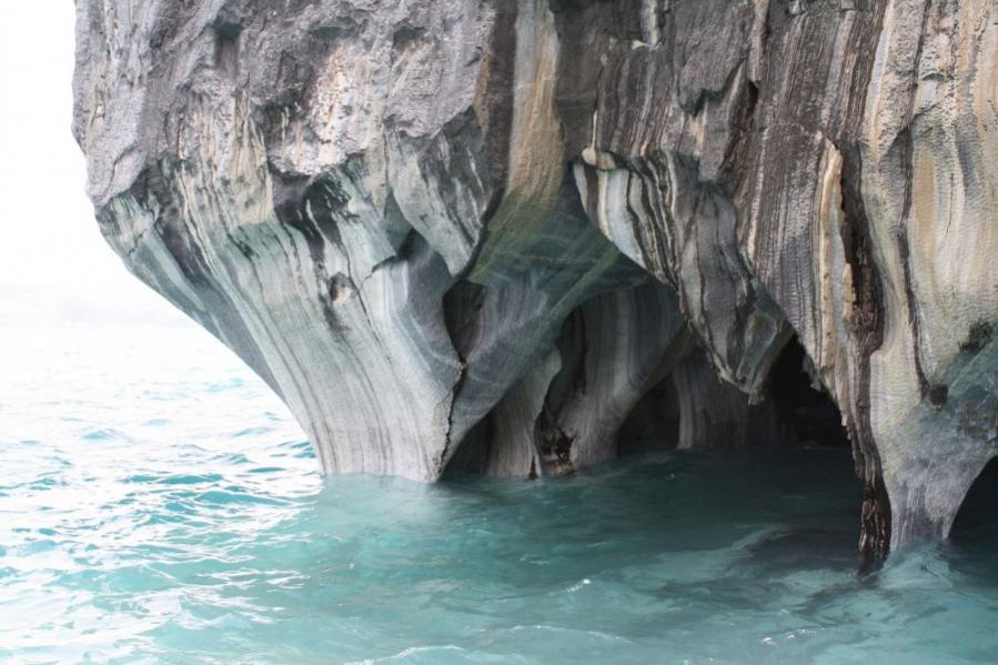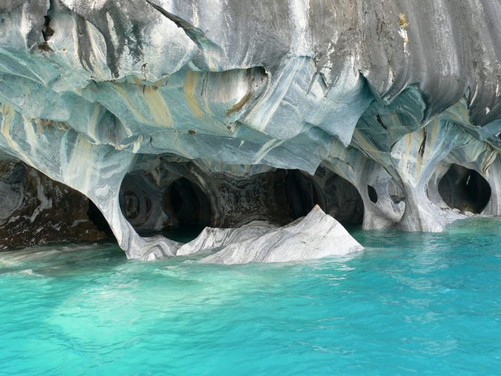 1. Воды озера Lago General Carrera бьют в отверстия и пещеры, вырезанные в мраморе, создавая удивительный пейзаж.