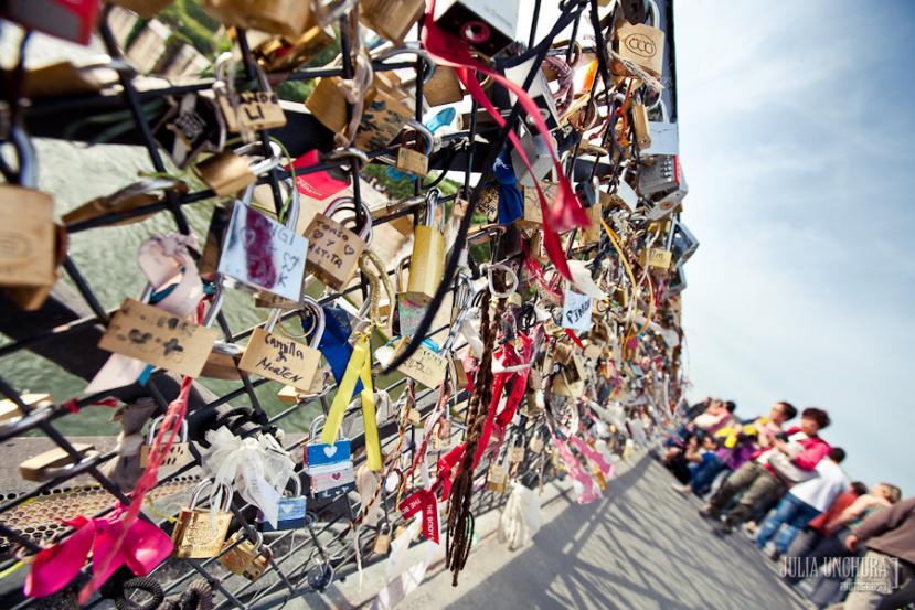 65. Опять перехожу реку. Тут почти на каждом мосту висят замочки влюбленных, но именно этот "чемпион" по их количеству!